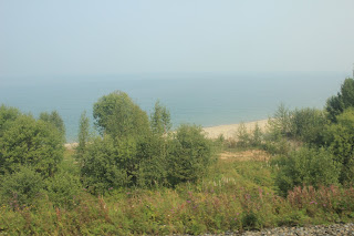 Unfortunately the most famous part of the journey, along the hughe Lake Baikal, is dipped in heavy smoke. Big forest fires shade the whole area around the mighty lake.